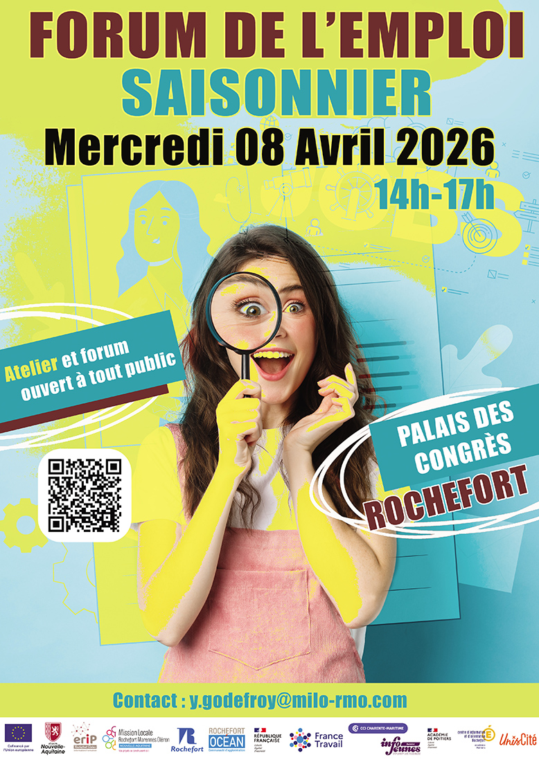 Vous recherchez un job pour l’été ? Rendez-vous au Forum de l’Emploi Saisonnier le 8 avril 2026, au Palais des Congrès de Rochefort ! Porté par l’ERIP Rochefort Océan, ce