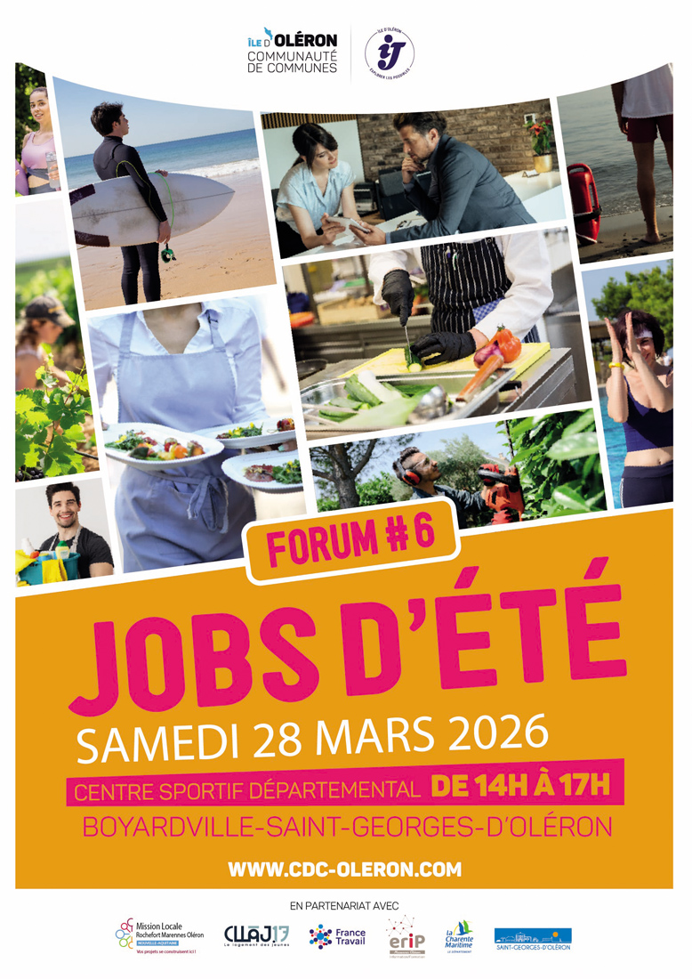 Vous cherchez un job d’été sur l’île d’Oléron ? Ne manquez pas le Forum Jobs d’Été, organisé par le Bureau Information Jeunesse île d’Oléron et la Mission Locale Rochefort Marennes